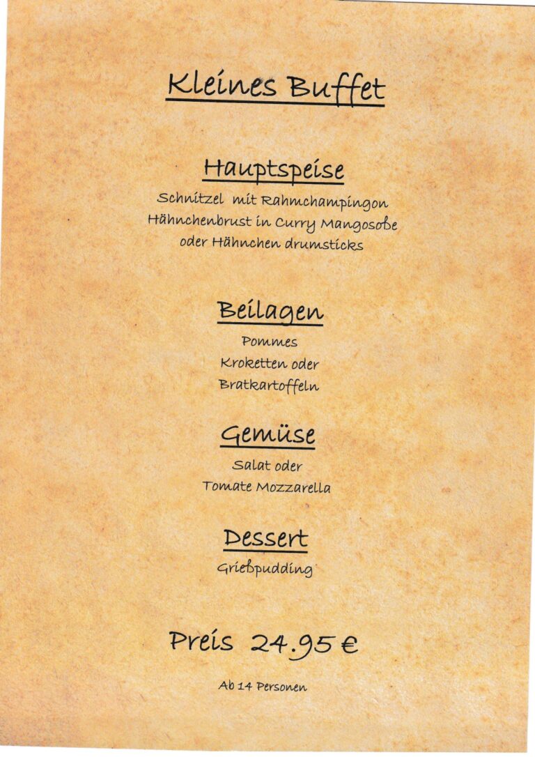 Das Buffet für größere Gruppen, bleibt wie gehabt nach Wunsch des Kunden!