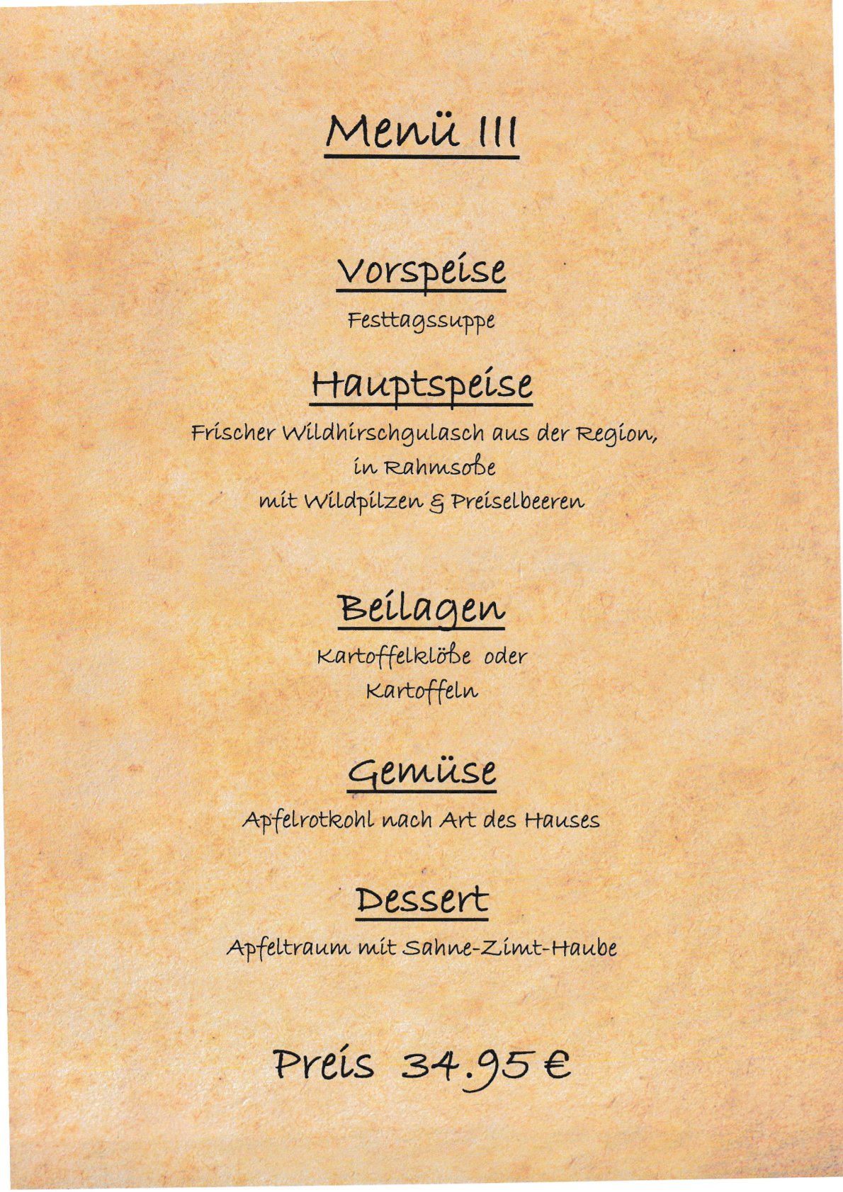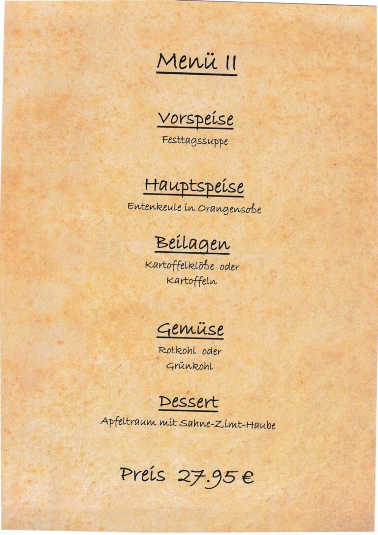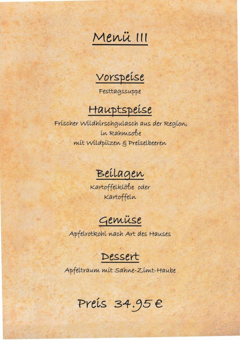 Wir bieten ab 14 Personengruppen ein kleines Buffet an (kein ala carte mehr) oder jetzt zu Weihnachten eine Auswahl der 3 Weihnachsmenü`s